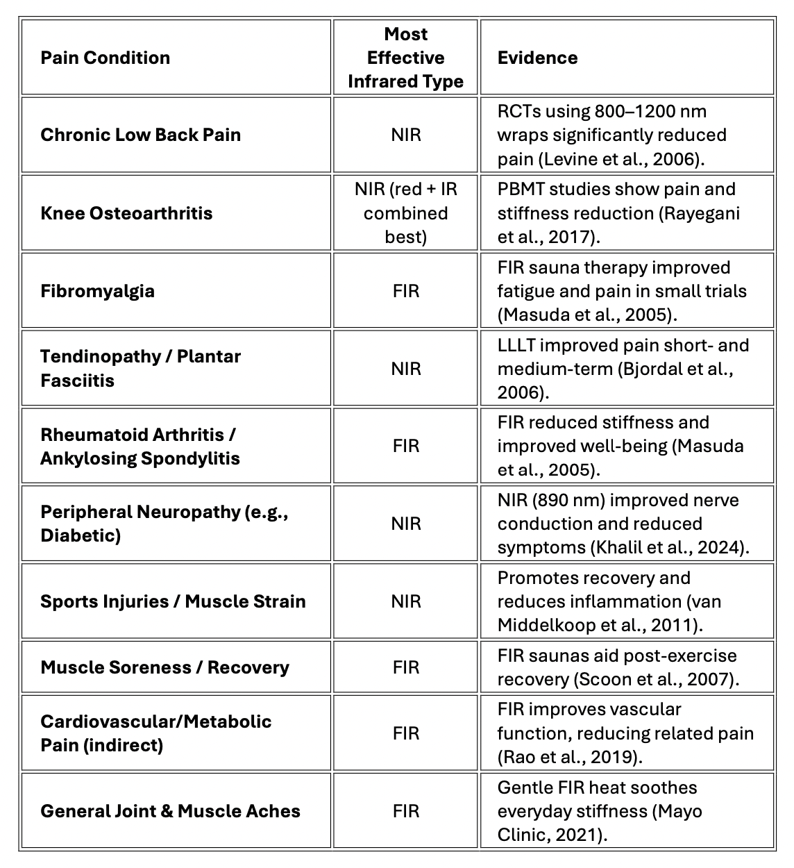 But not all infrared is the same—near-infrared (NIR) and far-infrared (FIR) light act differently in the body, and their usefulness may vary depending on the type of pain.